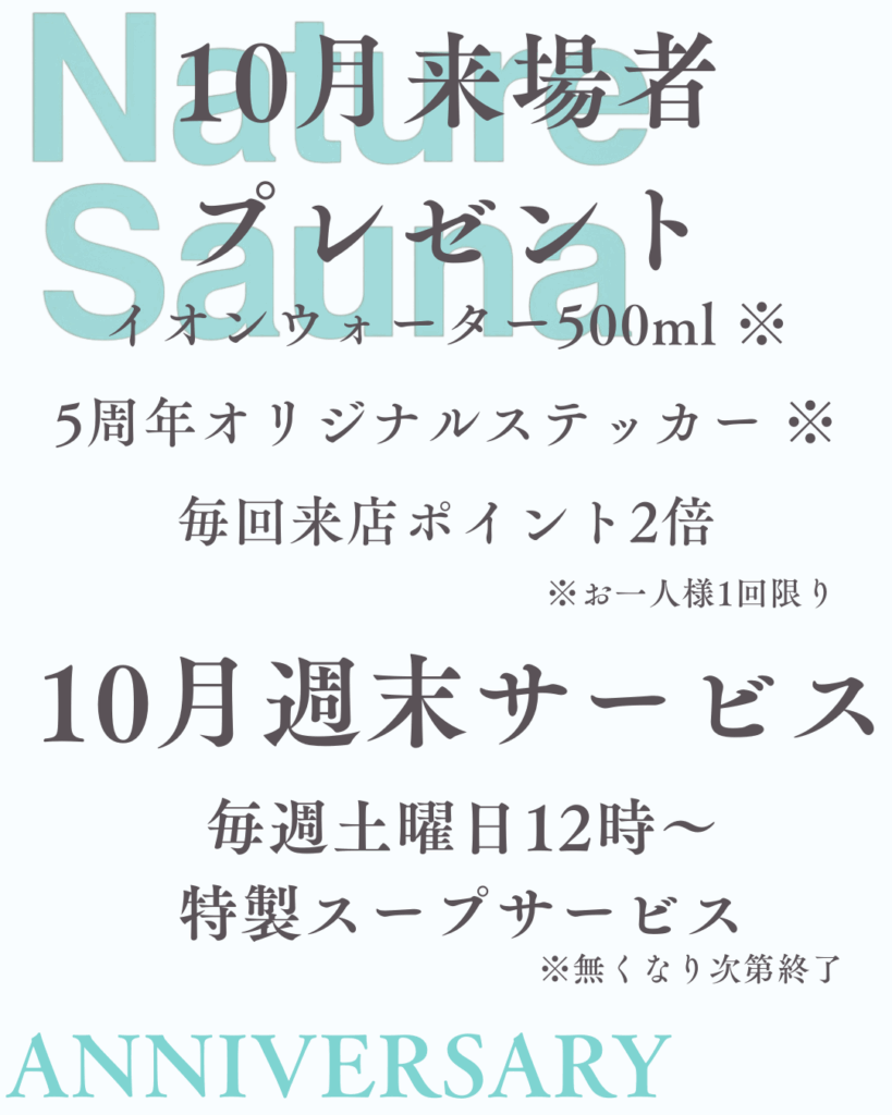 【10月】ネイチャーサウナ5周年感謝月間✨