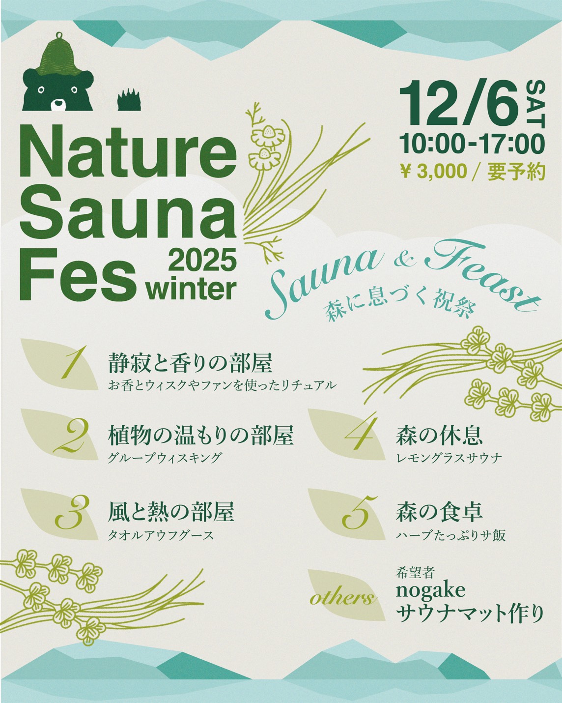 TEL: 070-2161-3315(10~17時、火・水曜定休)- ※Nature Saunaへのお問合せやご相談は、下記お問い合わせ窓口よりお願いします