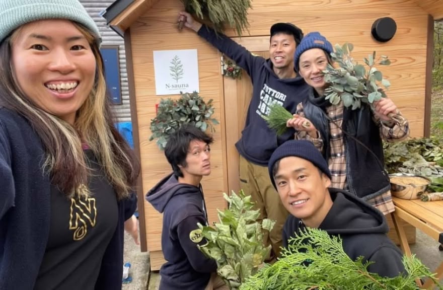Nature Saunaでは2023年春から日本のアウフグースの第一人者“五塔熱子”、ハーバルマイスター”あき”と共に、植物の力を取り入れた「ウィスキング」をスタッフが習得して資格取得に挑戦。2024年にはウィスキングの事業化とハーブを用いたサウナイベントを開始、さらに2025年春からは毎週末テントサウナまたはN-saunaでハーバルサウナを提供しています。